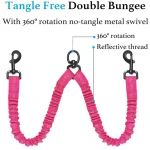Tired of struggling to walk two dogs? Constant different direction pulls and tangled leashes. The dual bungee add-on will eliminate these issues and return your walk back into a peaceful and pleasurable event. The bungee add-on provides extra cushion while maintaining controlled movement and 360-degree rotation at all connection point eliminate leash tangling.